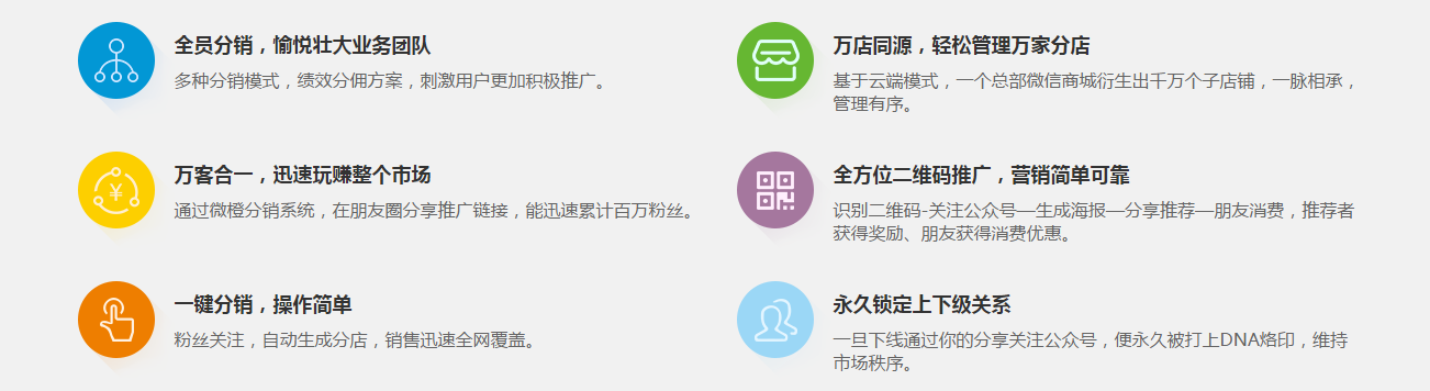 打造以分销商为中心的全新微信分销体验让粉丝实时有效的获取朋友圈流量并快速分享购买分佣。